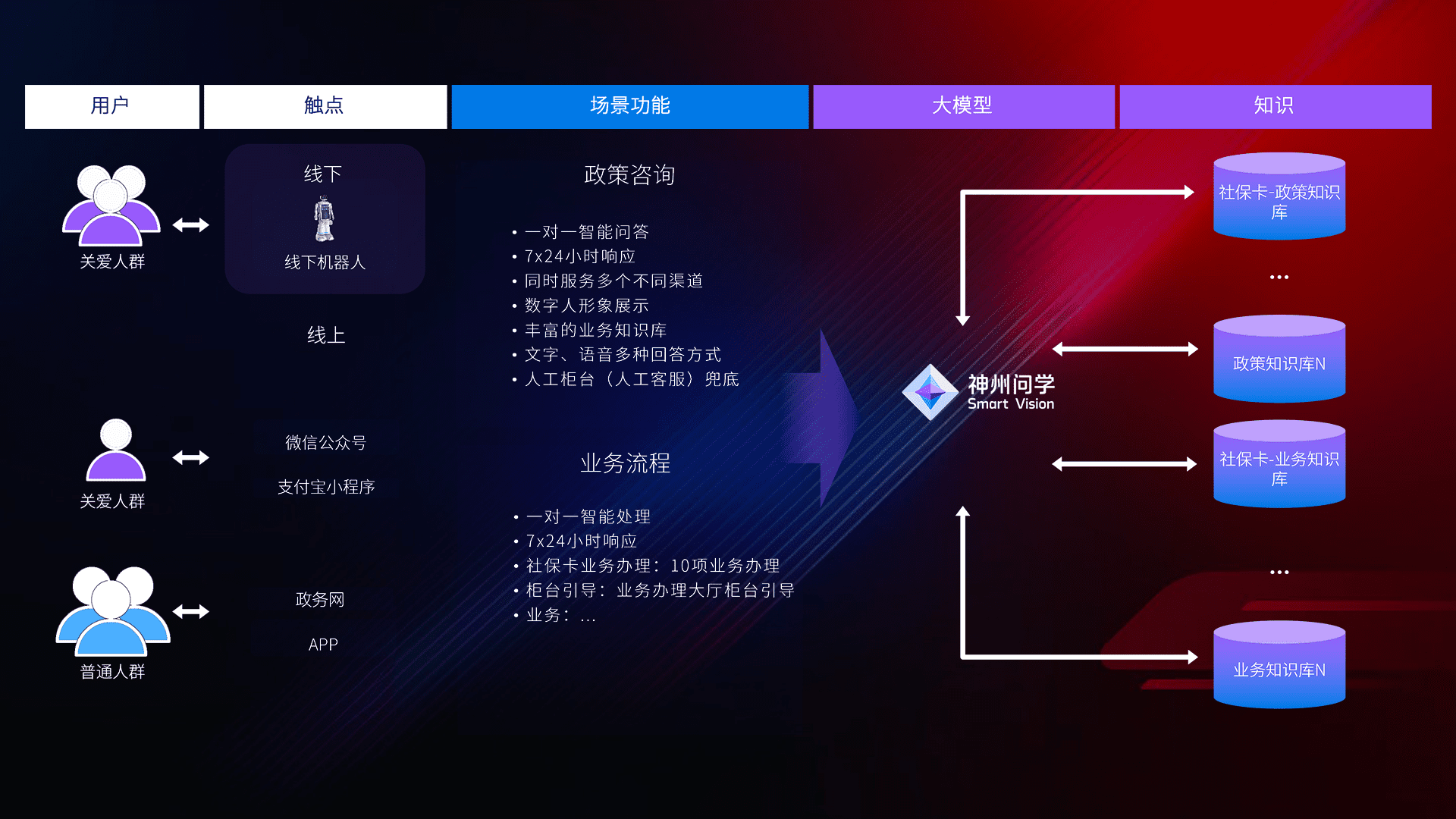 • 线上线下全覆盖:线上提供微信公众号、、、、支付宝小程序、、、、政务网、、、app多种渠道,,,,与线下机器人形成完整服务体系。。